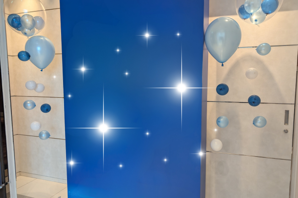 さらに企業カラーをアクセントに取り入れたバルーン装飾を加え、フォーマルな場にブランドイメージと統一感を感じさせる空間となりました!