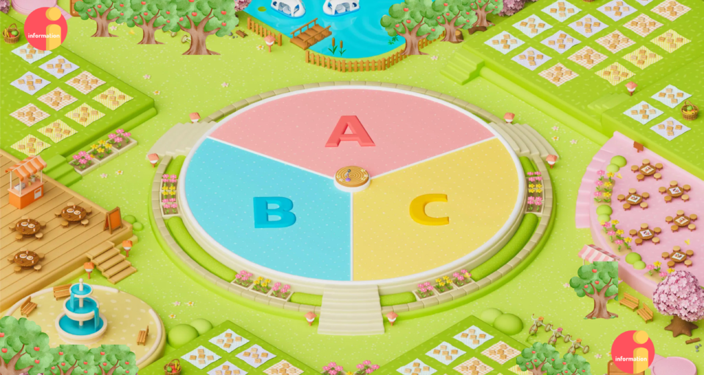 出題された問題に対し、参加者は「A・B・C」それぞれのエリアへ自分のアイコンを移動して回答。